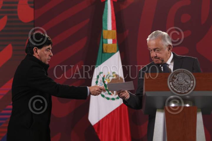 CIUDAD DE MÉXICO, 28FEBRERO2022.- Andrés Manuel López Obrador, Presidente de México, y Ricardo Sheffield Padilla, director de Profeco, durante la conferencia mañanera en Palacio Nacional. FOTO: MOISÉS PABLO/CUARTOSCURO.COM