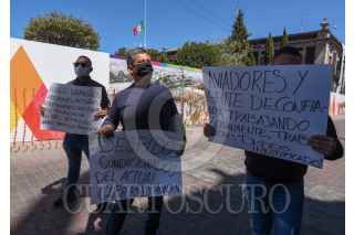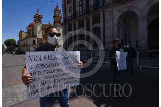TOLUCA, ESTADO DE MÉXICO, 28FEBRERO2022.- Tres ex trabajadores del Ayuntamiento de Toluca se manifestaron frente al Palacio Municipal denunciando que el actual gobierno municipal les obligo a firmar su renuncia, pasando por encima de sus derechos laborales, despidiendo a los trabajadores y dejando a aviadores y personal de confianza; solicitaron una reunión con el alcalde Raymundo Martínez Carbajal y que cumpla lo que les prometió. FOTO: CRISANTA ESPINOSA AGUILAR /CUARTOSCURO.COM