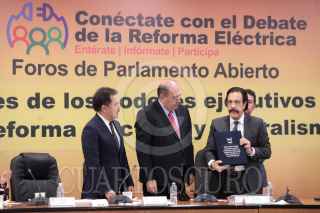 CIUDAD DE MÉXICO, 28FEBRERO2022.- Con la presencia de Carlos Manuel Merino Campos, gobernador provisional del Estado de Tabasco; Alfredo Ramírez Bedolla, gobernador de Michoacán; Lorena Cuéllar Cisneros, gobernadora de Tlaxcala; Ignacio Mier Velazco, coordinador de Morena en la Cámara de Diputados; Rubén Moreira Valdez, coordinador del PRI en Diputados; Sergio Gutiérrez Luna, presidente de la Cámara de Diputados; Omar Faya Meneses, gobernador de Hidalgo, y Rubén Rocha Moya, gobernador de Sinaloa, se dieron cita en el último debate de la Reforma Eléctrica en la modalidad de Foros de Parlamento Abierto en la Cámara de Diputados. FOTO: CUARTOSCURO.COM