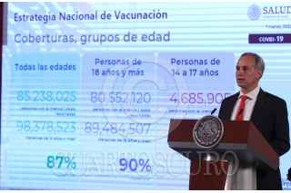 CIUDAD DE MÉXICO, 01MARZO2022.- Andrés Manuel López Obrador, presidente de México acompañado de Jorge Alcocer Varela, secretario de Salud; Delfina Gómez Álvarez, secretaria de Educación Pública; Hugo López-Gatell Ramírez, subsecretario de Prevención y Promoción de la Salud y Ricardo Mejía Berdeja, subsecretario de Seguridad Pública durante conferencia matutina dedicada al tema de salud. FOTO: ANDREA MURCIA /CUARTOSCURO.COM