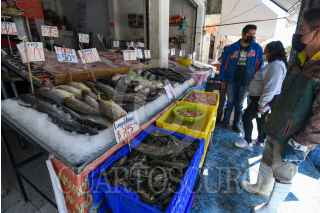 ZINACANTEPEC, ESTADO DE MÉXICO, 01MARZO2022.- A un día de iniciar la Cuaresma vendedores de pescados y mariscos de San Luis Mextepec en el municipio de Zinacantepec se encuentran listos con una gran variedad de pescados, a pesar de que sus ventas se han visto afectadas desde el inicio de la pandemia por COVID-19 confían en que este año puedan reponerse un poco, sus precios se incrementaron aproximadamente un 30 por ciento, lo que más le piden sus clientes son mojarras, carpas, charla por ser más económico. FOTO: CRISANTA ESPINOSA AGUILAR /CUARTOSCURO.COM