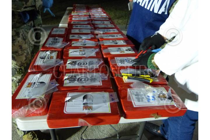PUERTO CHIAPAS, CHIAPAS, 01MARZO2022.- La Secretaría de Marina en el ejercicio de la Autoridad Marítima Nacional, a través de la Armada de México en funciones de Guardia Costera informa que el pasado 19 de febrero, personal adscrito a los Mandos Navales pertenecientes a la Octava Región Naval, con sede en Acapulco, Guerrero, aseguró presunta droga, un buque, una embarcación menor, así como efectos diversos, resultando la detención de siete presuntos transgresores de la Ley, al Suroeste de Puerto Chiapas, Chiapas, en coordinación con la Fiscalía General de la República (FGR). Esta acción se efectuó tras una operación de vigilancia marítima y aérea que permitió, en primera instancia, la localización de una embarcación menor con dos personas a bordo, así como diversos bultos y paquetes, y posteriormente, la localización de un barco pesquero, todo ello a aproximadamente 341 millas náuticas (631.5 kilómetros) al Suroeste de Puerto Chiapas. Es importante mencionar que cuando el personal naval arribó al lugar, los tripulantes ya no se encontraban a bordo de la embarcación menor y los paquetes se encontraban flotando en el mar. Sin embargo, al continuar con la operación y efectuar una inspección en el ejercicio del Derecho de Visita de conformidad con la Convención de las Naciones Unidas sobre el Derecho del Mar (CONVEMAR), se encontró a bordo del barco pesquero a las dos personas que antes habían sido vistas a bordo de la embarcación menor, así como diverso equipo electrónico de seguimiento. FOTO: SEMAR/CUARTOSCURO.COM