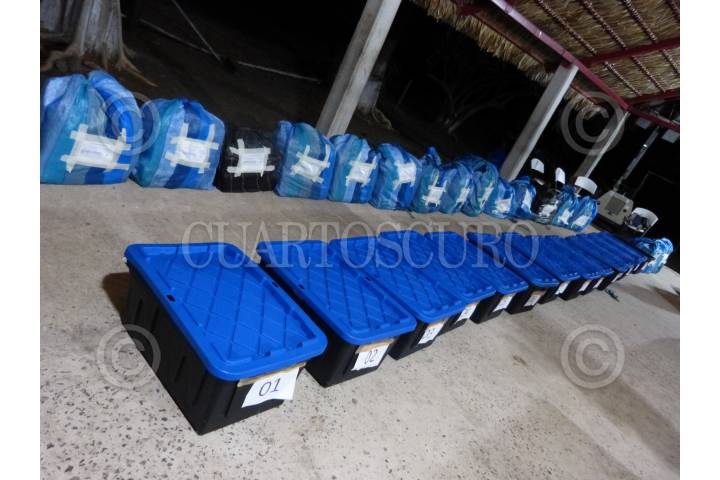 PUERTO CHIAPAS, CHIAPAS, 01MARZO2022.- La Secretaría de Marina en el ejercicio de la Autoridad Marítima Nacional, a través de la Armada de México en funciones de Guardia Costera informa que el pasado 19 de febrero, personal adscrito a los Mandos Navales pertenecientes a la Octava Región Naval, con sede en Acapulco, Guerrero, aseguró presunta droga, un buque, una embarcación menor, así como efectos diversos, resultando la detención de siete presuntos transgresores de la Ley, al Suroeste de Puerto Chiapas, Chiapas, en coordinación con la Fiscalía General de la República (FGR). Esta acción se efectuó tras una operación de vigilancia marítima y aérea que permitió, en primera instancia, la localización de una embarcación menor con dos personas a bordo, así como diversos bultos y paquetes, y posteriormente, la localización de un barco pesquero, todo ello a aproximadamente 341 millas náuticas (631.5 kilómetros) al Suroeste de Puerto Chiapas. Es importante mencionar que cuando el personal naval arribó al lugar, los tripulantes ya no se encontraban a bordo de la embarcación menor y los paquetes se encontraban flotando en el mar. Sin embargo, al continuar con la operación y efectuar una inspección en el ejercicio del Derecho de Visita de conformidad con la Convención de las Naciones Unidas sobre el Derecho del Mar (CONVEMAR), se encontró a bordo del barco pesquero a las dos personas que antes habían sido vistas a bordo de la embarcación menor, así como diverso equipo electrónico de seguimiento. FOTO: SEMAR/CUARTOSCURO.COM