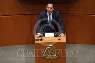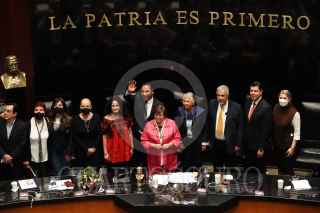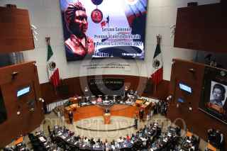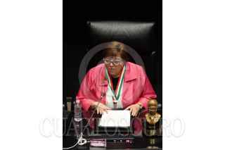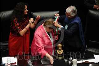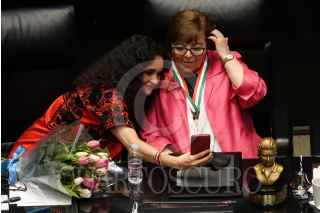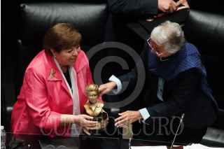 CIUDAD DE MÉXICO, 01MARZO2022.- Olga Sánchez Cordero, presidenta de la Mesa Directiva del Senado, otorgó el reconocimiento al mérito "Rosario Castellanos" a la poeta Elsa Cross en el pleno de la Cámara de Senadores. FOTO: GRACIELA LÓPEZ /CUARTOSCURO.COM