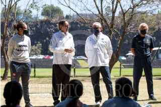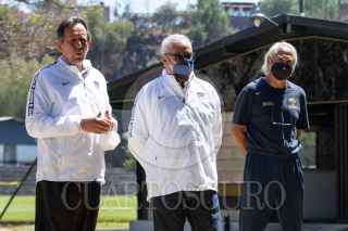 CIUDAD DE MÉXICO, 01MARZO2022.- Leonardo Cuéllar Rivera fue presentado hoy como coordinador de desarrollo del futbol femenil del Club Universidad Nacional, cargo en el que tomará la responsabilidad de las actividades deportivas del primer equipo femenil auriazul así como de sus fuerzas básicas. El ingeniero Leopoldo Silva, presidente del Club, le dio la bienvenida frente a las integrantes del plantel en una breve ceremonia, en la que estuvo acompañado además por Miguel Mejía Barón, vicepresidente deportivo de la institución; Luis de Buen, coordinador deportivo de Pumas Femenil; y Karina Báez, directora técnico del equipo femenil. FOTO: CLUB PUMAS/CUARTOSCURO.COM