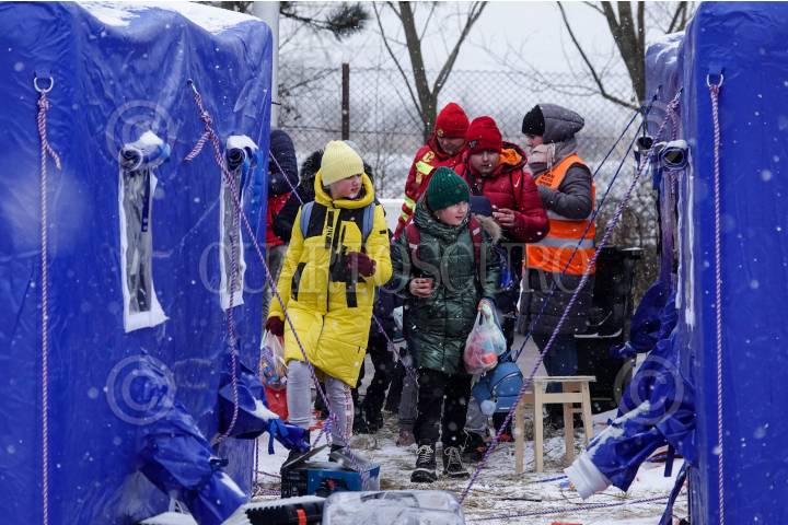 SIRET, RUMANIA, 02MARZO2022.- Miles de refugiados de Ucrania continúan arribando a la ciudad fronteriza de Siret para resguardarse tras el estallido de la invasión Rusa a territorio Ucraniano. Diversas organizaciones de ayuda humanitaria apoyan a los recién llegados con comida, ropa y utensilios de primera mano tras tener que abandonar sus bienes. Las naciones colindantes con Ucrania han recibido a más de medio millón de desplazados por la guerra, siendo Rumania de los primeros cinco con hasta el momento 34,000 mujeres y niños en su mayoría recibidas. FOTO: GALO CAÑAS/CUARTOSCURO.COM