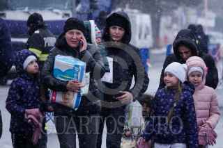 SIRET, RUMANIA, 02MARZO2022.- Miles de refugiados de Ucrania continúan arribando a la ciudad fronteriza de Siret para resguardarse tras el estallido de la invasión Rusa a territorio Ucraniano. Diversas organizaciones de ayuda humanitaria apoyan a los recién llegados con comida, ropa y utensilios de primera mano tras tener que abandonar sus bienes. Las naciones colindantes con Ucrania han recibido a más de medio millón de desplazados por la guerra, siendo Rumania de los primeros cinco con hasta el momento 34,000 mujeres y niños en su mayoría recibidas. FOTO: GALO CAÑAS/CUARTOSCURO.COM