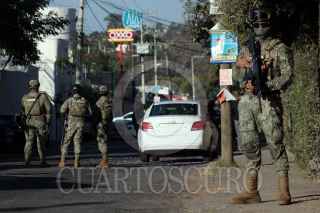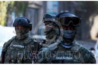 CUERNAVACA, MORELOS,02MARZO2022.- Elementos de la MARINA prestan apoyo en un cateo que realizan agentes de la Fiscalía General de la Republica en una residencia de la calle Francisco Villa en la colonia Rancho Cortes, al norte de la capital. El operativo de cateo comenzó por la madrugada y se prolongo varias horas hasta el medio día. Extraoficialmente se supo que este cateo persigue a Israel Blanco Nava, apodado el "Seven" presunto jefe de plaza de un grupo delincuencial. El 30 de agosto del año pasado se le ubico y monto un operativo de cateos en varias residencias de la capital y el municipio de Temixco sin conseguir detenerlo, sin embargo en aquella ocasión su pareja sentimental y su mama fueron detenidas con dinero, armas y drogas. FOTO: MARGARITO PÉREZ RETANA / CUARTOSCURO.COM