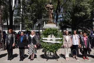 CIUDAD DE MÉXICO, 02MARZO2022.- Claudia Sheinbaum, jefa de Gobierno; Beatriz Gutiérrez Müller, esposa del presidente Andrés Manuel López Obrador; Rosa Isela Rodríguez, secretaria de Protección y Seguridad Ciudadana; Ernestina Godoy, fiscal General de la Ciudad de México, y Alejandra Fraausto, secretaria de Cultura, encabezaron la ceremonia del 193 Aniversario luctuoso de Josefa Ortíz de Domínguez y Corregidora, realizado en la estatua de bronce en Avenida Reforma. FOTO: GRACIELA LÓPEZ /CUARTOSCURO.COM