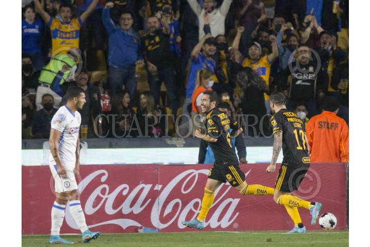 SAN NICOLÁS DE LOS GARZA, NUEVO LEÓN, 02MARZO2022.- Los Tigres y el Cruz Azul consiguen un empate 2-2 durante la jornada 8, en el estadio Universitario. FOTO: GABRIELA PÉREZ MONTIEL / CUARTOSCURO.COM