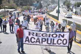 CHILPANCINGO, GUERRERO, 02MARZO2022.- Trabajadores de diversas secciones del Sindicato Único de Servidores Públicos del Estado de Guerrero (SUSPEG) se manifestaron sobre el boulevard Vicente Guerrero para demandar a la gobernadora Evelyn Salgado pineda que atienda necesidades y adeudos que el estado tiene con la base trabajadora, también que destituya a la magistrada presidenta del Tribunal de Conciliación y Arbitraje, Miriam Cortés Cisneros, quien habría validado la elección de Adela Hernández Angelito como dirigente estatal de este sindicato. En la marcha participaron trabajadores provenientes de las 7 regiones del estado, que reclaman una mesa de trabajo con la gobernadora a quien expondrían reclamos como el pago del millonario adeudo que se tiene con el ISSSTE y FOVISSSTE que les genera problemas con sus prestaciones. También le demandan apoyo para que hacer que instituciones deudoras al Issspeg solventen los adeudos que tienen con el organismo que les presta seguridad social. Además reclaman el otorgamiento de bases, recategorizaciones, pago de estímulos a OPD, incremento en el presupuesto de promoción horizontal para el magisterio estatal, liberación inmediata de cuotas sindicales, recapitalización del Plan de Previsión social, entre una veintena de puntos más. FOTO: DASSAEV TÉLLEZ ADAME/CUARTOSCURO.COM