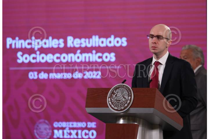 CIUDAD DE MÉXICO, 03MARZO2022.- Andrés Manuel López Obrador, presidente de México acompañado de Carlos Torres Rosas, secretario técnico del Gabinete, durante la conferencia matutina en Palacio Nacional. FOTO: ANDREA MURCIA /CUARTOSCURO.COM