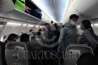 BUCAREST, RUMANIA, 03MARZO2022.- Los mexicanos que han solicitado el apoyo del gobierno de México para su repatriación tras el estallido de la invasión rusa a Ucrania, arribaron al Aeropuerto Internacional de Bucarest-Henri Coandă, para abordar el avión que la Fuerza Aérea Mexicana dispuso. Al grupo de México se sumaron algunos ecuatorianos y connacionales que se ubicaban en Polonia. La cifra de personas que abordaron el avión es de 81 personas y una mascota, 44 mexicanos; 28 ucranianos; 7 ecuatorianos; un australiano y un peruano. FOTO: GALO CAÑAS/CUARTOSCURO.COM