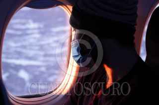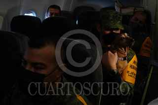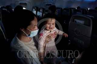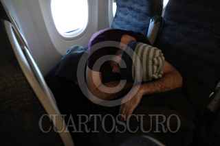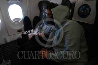 CANADÁ, 03MARZO2022.- Tras más de 12 horas de vuelo, los connacionales repatriados y personas extranjeras apoyadas por el gobierno mexicano para salir de Ucrania presentan signos de cansancio. Se estima que el vuelo arribe a la Base Aérea Militar 19 de la Fuerza Aérea Mexicana (F.A.M) de la Ciudad de México. FOTO: GALO CAÑAS/CUARTOSCURO.COM