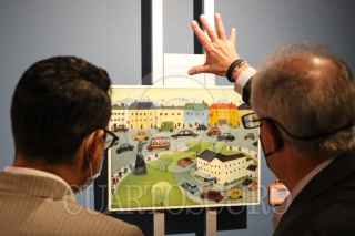 CIUDAD DE MÉXICO, 03MARZO2022.- Armando Ireta, representante de la Secretaría de Comunicaciones y Transportes; Katrien Vangheluwe, y José Castro Leñero, artistas de colecciones de la SCHP; y Adriana Castillo Román, directora general de Promoción Cultural y Acervl Patrimonial de Palacio Nacional, encabezaron la inauguración de la exposición "Y en los caminos andamos" en el Museo de Arte de la SHCP. La muestra reúne atlas, pinturas de óleo y guías turísticas utilizadas en distintas épocas en el país. FOTO: MARIO JASSO/CUARTOSCURO.COM