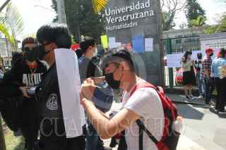 XALAPA, VERACRUZ, 04MARZO2022.- Estudiantes de la Facultad de Humanidades de la Universidad Veracruzana se manifestaron para exigir el regreso a clases presenciales, están en desacuerdo por la modalidad virtual. FOTO: YERANIA ROLÓN/CUARTOSCURO.COM