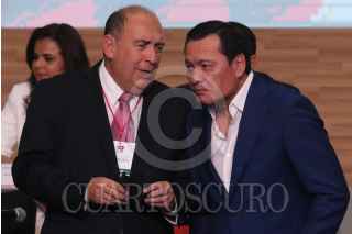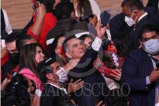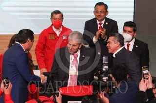 CIUDAD DE MÉXICO, 04MARZO2022.- Alejandro Moreno Cárdenas, dirigente nacional del PRI; Humberto Moreira, coordinador del PRI en la Cámara de Diputados; Miguel Ángel Osorio Chong, senador del PRI; Carolina Viggiano, y Pablo Guillermo Ángulo, diputados del PRI; y los gobernadores: Alejandro Ismael Murat (Oaxaca) y Omar Fayad, gobernador de Hidalgo, encabezaron la sesión solemne por el 93 Aniversario del Partido Revolucionario Institucional (PRI) celebrado el auditorio Plutarco Elías Calles del CEN. FOTO: MARIO JASSO/CUARTOSCURO.COM