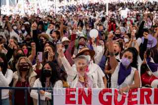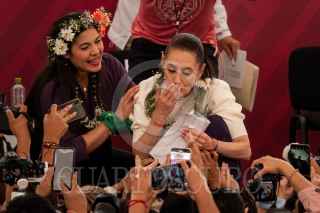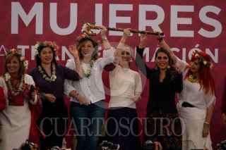 CIUDAD DE MÉXICO, 05MARZO2022.- Claudia Sheinbaum, jefa de gobierno de la Ciudad de México, en compañía de las gobernadoras: Evelyn Salgado Pineda (Guerrrero); Indira Vizcaíno (Colima); María del Pilar Ávila (Baja California); Lorena Cuéllar Cisneros (Tlaxcala) y Layda Sansores (Campeche), así como de Rocío Nataly Barrera, presidenta del Congreso de Yucatán; Mariela Gutiérrez Escalante, presidenta municipal de Tecámac, y Olga Sánchez Cordero, presidenta del senado de la República, encabezaron el Encuentro de Mujeres por la Transformación en el marco del Día Internacional de la Mujer. Las legisladoras, gobernadoras y secretarias federales llamaron a continuar inspirando y abriendo brecha para las siguientes generaciones. FOTO: GALO CAÑAS/CUARTOSCURO.COM