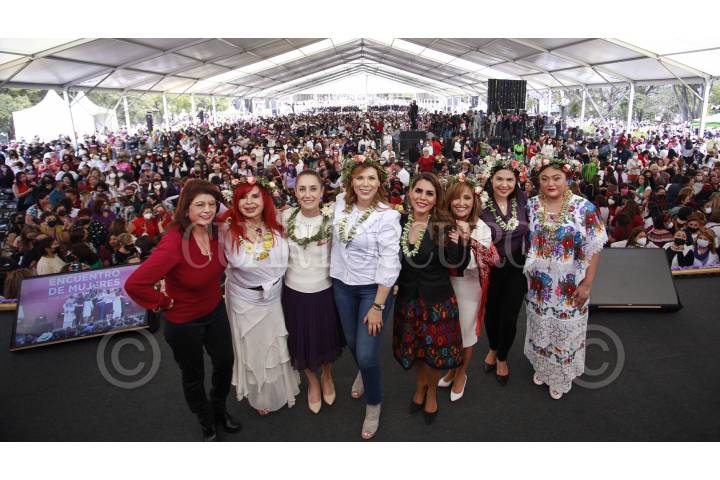 CIUDAD DE MÉXICO, 04MARZO2022.- Claudia Sheinbaum Pardo, jefa de gobierno, junto con las gobernadoras: Evelyn Salgado Pineda (Guerrrero); Indira Vizcaíno (Colima); María del Pilar Ávila (Baja California); Lorena Cuéllar Cisneros (Tlaxcala) y Layda Sansores (Campeche), encabezó el “Encuentro de Mujeres por la Transformación” que se llevó a cabo en el Monumento a la Revolución. FOTO: GOBIERNO DE LA CIUDAD DE MÉXICO/CUARTOSCURO.COM