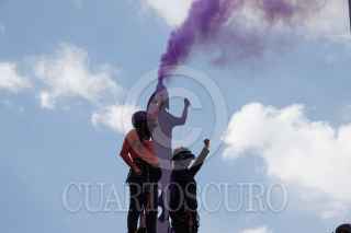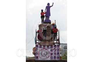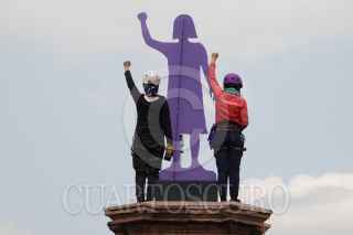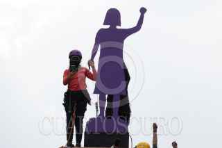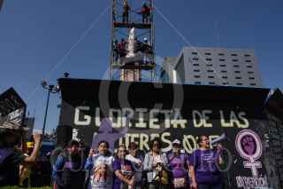 CIUDAD DE MÉXICO, 05MARZO2022.- Madres y familiares de personas desaparecidas, integrantes de colectivas feministas y mujeres sustituyeron la Antimonumenta en la Glorieta de las Mujeres que Luchan. Desde temprano realizaron una ayuda comunitaria e instalaron un tendedero de deudores alimentarios. FOTO: GRACIELA LÓPEZ /CUARTOSCURO.COM