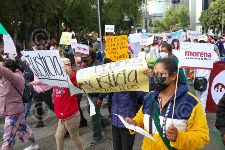 CIUDAD DE MÉXICO. 07MARZO2022.- Marcha de simpatizantes de Morena marcharon del Ángel de la Independencia al Senado de la República, para demandar un revisiones en penales del país, principalmente el Bordo de Xochiaca, en Ciudad Nezahualcóyotl Estado de México. FOTO: VICTORIA VALTIERRA/CUARTOSCURO.COM