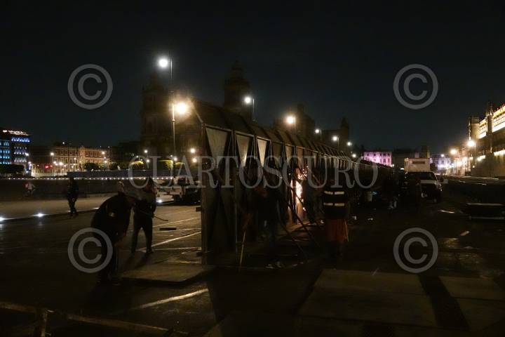 COUDAD DE MÉXICO, 07MARZO2022.- Previo a la marcha del 8M, en conmemoración del Día Internacional de la Mujer, trabajadores reforzaron las vallas que protegen Palacio Nacional. Así mismo, mujeres pintaron el lema “México feminicida”. FOTO: GRACIELA LÓPEZ /CUARTOSCURO.COM