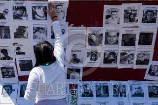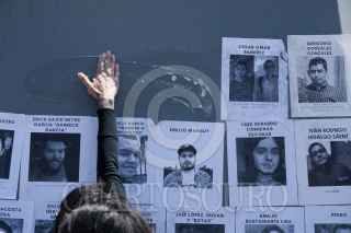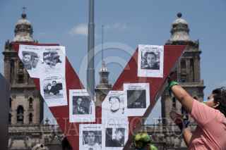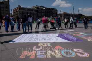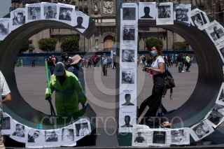 CIUDAD DE MEXICO, 08MARZO2022.- En el marco del Día Internacional de la Mujer, la colectiva feministas Justicieras radicales realizó la colocación de un tendedero de denuncias en el Zócalo capitalino. La acción busca visibilizar las caras de agresores y servir de catarsis a las víctimas. FOTO: GALO CAÑAS/CUARTOSCURO.COM