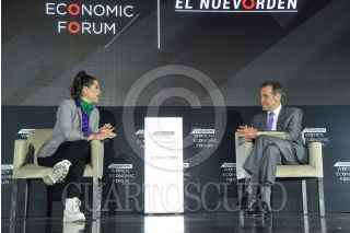 CIUDAD DE MÉXICO, 08MARZO2022.- Lorenzo Córdova, consejero presidente del Instituto Nacional Electoral (INE), y la periodista Yuridia Sierra, durante su participación en el "Women Economic Forum" (WEF) Iberoamérica 2022 con la temática "Sin mujeres no hay democracia". FOTO: MARIO JASSO/CUARTOSCURO.COM