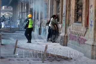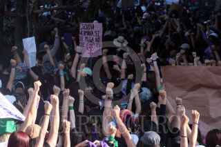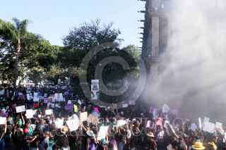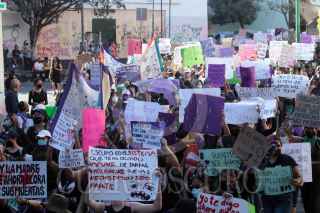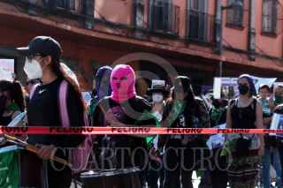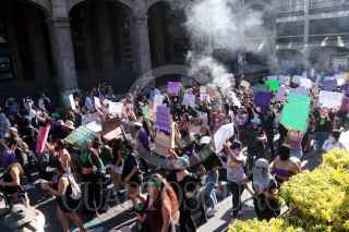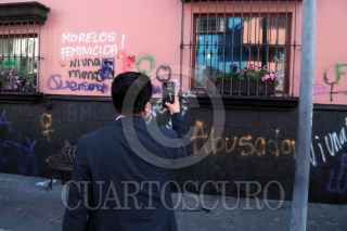 CUERNAVACA, MORELOS,08MARZO2022.- Cientos de mujeres morelenses, algunas acompañadas de sus hijos, conmemoraron el Dia Internacional de la Mujer, participando en la marcha “ El Estado silencia, nosotras gritamos”. La marcha inicio en el barrio de la Carolina y desemboco en el palacio de gobierno, a su paso un grupo de mujeres realizo pintas y vandalizo un famoso restaurante, el hospital del ISSSTE, la antigua sede del Congreso, un banco, y en el palacio de gobierno estatal rompieron vidrios de ventanas y prendieron fuego a algunas oficinas, sin que se generalizara el incendio. FOTO: MARGARITO PÉREZ RETANA / CUARTOSCURO.COM
