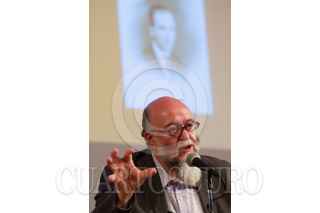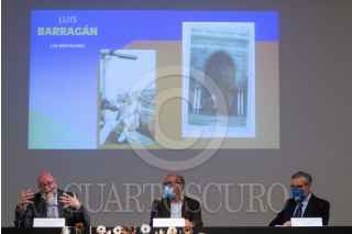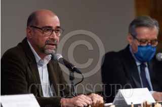 CIUDAD DE MÉXICO, 09MARZO2022.- Guillermo Eguiarte Bendímez, director de la Casa Estudio Luis Barragán; Jorge Esquinca, escritor, y Alfonso Alfaro Barreto, durante el simposio "Luis Barragán 120 Aniversario", en el Palacio de Bellas Artes. FOTO: MOISÉS PABLO/CUARTOSCURO.COM