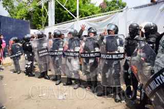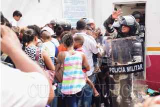 TAPACHULA, CHIAPAS, 09MARZO2022.- Migrantes de distintas nacionalidades que se concentraron para pedir una cita ante las autoridades del Instituto Nacional de Migración, tuvieron una ligera trifulca con elementos de la Guardia Nacional después de que informarán sólo la atención de mujeres y niños. FOTO: DAMIÁN SÁNCHEZ/CUARTOSCURO.COM