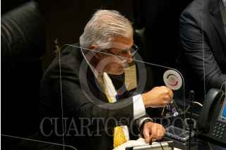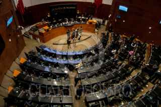 CIUDAD DE MÉXICO, 09MARZO2022.- La sesión ordinaria en la Cámara de Senadores fue suspendida tras la falta de qourum debido al Paro Nacional de Mujeres. Las legisladoras de las diferentes bancadas no asistieron al recinto por lo que José Narro Céspedes, presidente en funciones de la Mesa Directiva, la dio por terminada no sin antes expresar que la Cámara Alta apoya la lucha de las mujeres y busca crear espacios libres de toda violencia. FOTO: GALO CAÑAS/CUARTOSCURO.COM