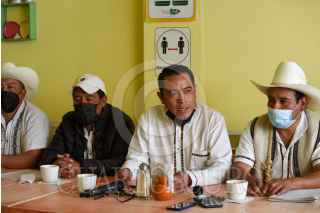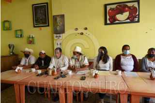 TOLUCA, ESTADO DE MÉXICO, 09MARZO2022.- Eduardo González Gómez en conferencia de prensa informó que integrantes del pueblo indígena Tlahuica decidieron el pasado 31 de enero del 2022 separarse del municipio de Ocuilan y solicitar ante la Legislatura local sean reconocidos como el municipio 126 del Estado de México, y presentaron a los integrantes del ayuntamiento provisional de San Juan Atzingo ante medios de comunicación. FOTO: CRISANTA ESPINOSA AGUILAR /CUARTOSCURO.COM