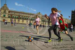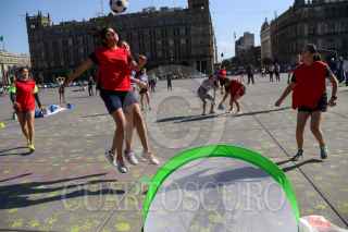 CIUDAD DE MÉXICO. 09MARZO2022.- Diversos colectivos feministas organizaron un torneo de retas de equipos de puras mujeres, este evento como parte del día internacional de la mujer y tuvo lugar en el Zócalo capitalino. FOTO: VICTORIA VALTIERRA/CUARTOSCURO.COM