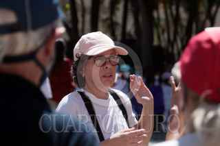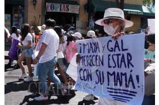 CUERNAVACA, MORELOS,11MARZO2022.- Marchan madre, familiares y compañeros de escuela de las niñas Maya y Gal Dor El Medina, piden que sean regresadas por su padre, quien hace dos días recibió la patria potestad de las menores por el Tribunal Superior de Justicia de Morelos. En la Catedral entregaron un documento al obispo Ramon Castro y pidieron su ayuda, después se encaminaron al Palacio de Gobierno donde igualmente pidieron el apoyo del gobernador del Estado, concluyendo su marcha en el Tribunal Superior de Justicia. En la imagen Carolina Inés Medina, madres de las menores y quien en Morelos tenia la patria potestad hasta el 9 de marzo. FOTO: MARGARITO PÉREZ RETANA / CUARTOSCURO.COM