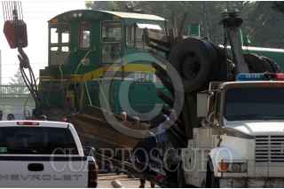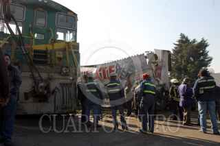 MÉXICO, D.F., 24OCTUBRE2006.- En la Avenida Eulalia Guzmán y calle Maetros, un tren se descarrillo y arrastró un trailer durante la madrugada. FOTO: PEDRO MARRUFO/CUARTOSCURO.COM