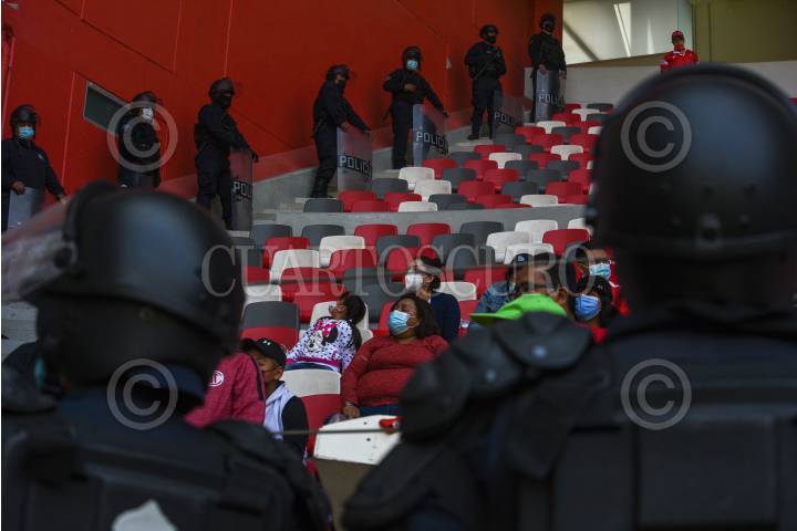 TOLUCA, ESTADO DE MÉXICO, 13MARZO2022.- Un fuerte dispositivo de seguridad por parte de la Policía Estatal se desplegó fuera y dentro del estadio Nemesio Diez, durante el encuentro entre el Club Toluca y la escuadra del Pachuca, desplegaron 600 elementos para resguardar la seguridad de los aficionados que acudieron al estadio. FOTO: CRISANTA ESPINOSA AGUILAR /CUARTOSCURO.COM