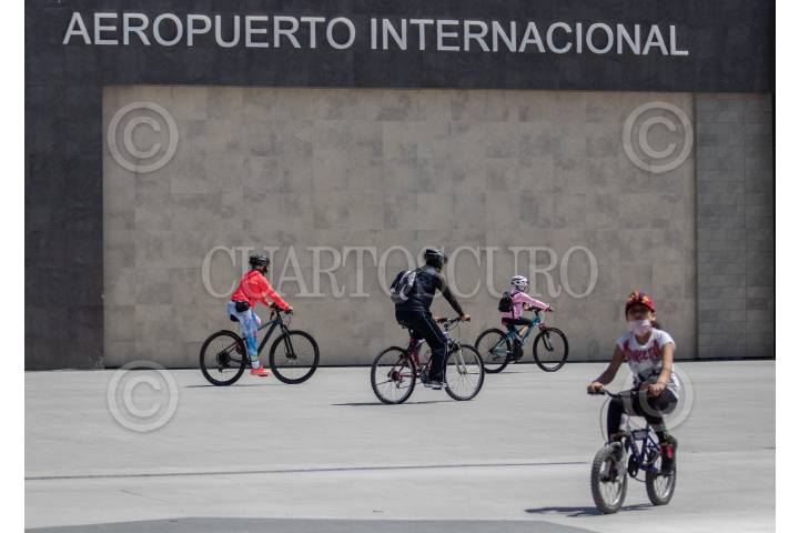 ZUMPANGO, ESTADO DE MÉXICO, 13MARZO2022.- Como parte de las actividades previas a la inauguración del Aeropuerto Internacional Felipe Ángeles (AIFA) se realizó un paseo ciclista para que las personas puedan conocer sus instalaciones. En el lugar también se llevaron actividades lúdicas con el personal militar. FOTO: ANDREA MURCIA/CUARTOSCURO.COM