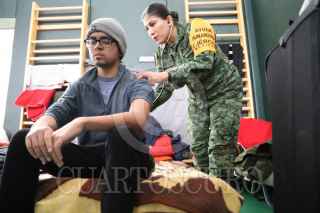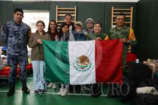 SIRET, RUMANIA, 13MARZO2022.- Elementos del ejército mexicano en colaboración con la Secretaría de Relaciones Exteriores (SRE) arribaron a un campamento de refugiados que salieron de Ucrania debido a la invasión rusa, ubicado en la ciudad de Siret en Rumania para apoyar con víveres y revisiones médicas al grupo de mexicanos que regresarán a su país en las próximas horas. FOTO: SRE /CUARTOSCURO.COM