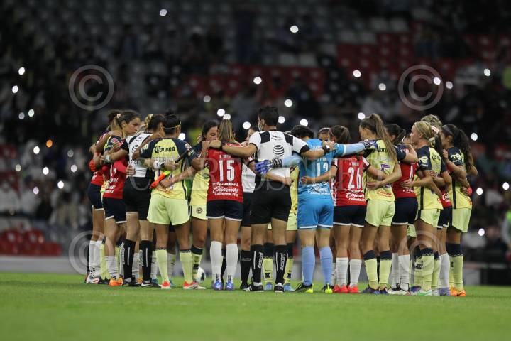 CIUDAD DE MÉXICO, 13MARZO2022.- Partido de fútbol correspondiente a la jornada 10 del torneo Clausura 2022 “Grita por la Paz” de la Liga MX Femenil entre América vs Guadalajara en el Estadio Azteca. FOTO: EDGAR NEGRETE/CUARTOSCURO.COM