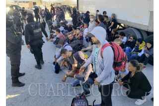 MONCLOVA, COAHUILA, 13MARZO2022.- Este día los elementos de la policía de Coahuila detuvieron un trailer en la carretera 57 perteneciente al Municipio de Monclova, Coahuila, el vehículo transportaba 82 migrantes de origen cubano, al momento de la detención del trailer, fueron llamados los equipos de atención médica que reportaron que todas las personas que iban a bordo se encuentran bien de salud, sólo con síntomas de deshidratacón. FOTO: CUARTOSCURO.COM