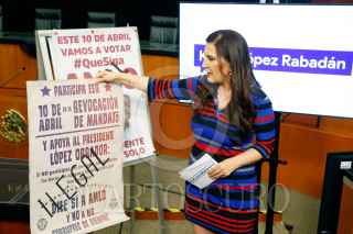 CIUDAD DE MÉXICO, 14MARZO2022.- La senadora panista Kenia López Rabadán ofreció su contramañanera en el Senado de la República, en la cual calificó de ilegal la propaganda sin identificar a favor de la revocación de mandato. FOTO: MOISÉS PABLO/CUARTOSCURO.COM