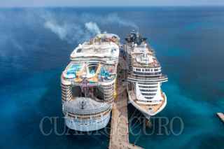 COZUMEL, QUINTANA ROO, 14MARZO2022.- El crucero más grande del mundo, el "Wonder of the Seas", de la empresa naviera Royal Caribbean International, arribó este lunes a Cozumel. FOTO: CUARTOSCURO.COM