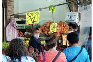 CUERNAVACA, MORELOS,15MARZO2022.- Venta de fruta de temporada en el área de bodegas del mercado Adolfo López Mateos. Un gran mosaico de colores forman los plátanos, papayas, mangos y melones que se ofertan a buen precio. FOTO: MARGARITO PÉREZ RETANA / CUARTOSCURO.COM