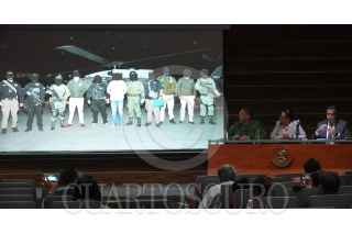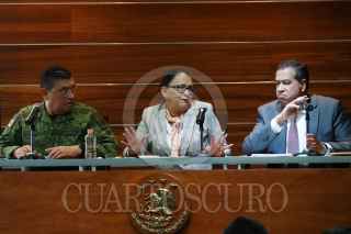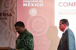 CIUDAD DE MÉXICO, 15MARZO2022.- Luis Cresencio Sandoval, secretario de la Defensa Nacional; Rosa Icela Rodríguez, secretaria de Seguridad y Protección Ciudadana, y Ricardo Mejía Berdeja, subsecretario de Seguridad Pública de la Secretaría de Seguridad y Protección Ciudadana, encabezaron una conferencia de prensa en la que anunciaron la detención de Juan Gerardo Treviño, alias "El Huevo", quien fue deportado para ponerlo en las autoridades extranjeras en Tijuana por los delitos de conspiración de posesión de armas de fuego, posesión de sustancias químicas y narcotráfico. FOTO: GRACIELA LÓPEZ /CUARTOSCURO.COM