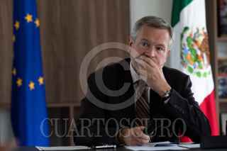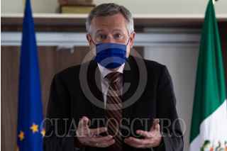 CIUDAD DE MÉXICO, 15MARZO2022.- Gautier Mignot, embajador de la Unión Europea en México, ofreció una rueda de prensa en su sede diplomática, para hablar sobre la nueva iniciativa de cooperación en el tema de transición verde que presentaron en conjunto con la Secretaría de Relaciones Exteriores. FOTO: MOISÉS PABLO/CUARTOSCURO.COM