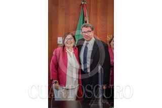 CIUDAD DE MÉXICO, 15MARZO2022.- Con el aval de todos los grupos parlamentarios representados en el Senado y de su bancada, la morenista Imelda Castro Castro se integró a la Junta de Coordinación Política(Jucopo) en sustitución de Marybel Villegas quien solicitó licencia el pasado 2 de marzo. La también vicepresidenta de la Mesa Directiva del Senado es senadora por el estado Sinaloa, estudió la Licenciatura en Ciencia Política y Administración Pública en la Universidad Autónoma de Sinaloa y de 1994 a 1997 la Maestría en Ciencia Política en la Universidad Autónoma de Zacatecas. Ricardo Monreal, presidente de la Jucopo, felicitó a la morenista. FOTO: CUARTOSCURO.COM