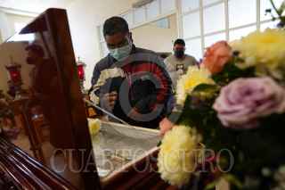 ZITÁCUARO, MICHOACÁN, 16MARZO2022. El periodista Armando Linares López fue velado en la funeraria Los Ángeles en la colonia Melchor Ocampo. Al velorio arribaron amigos y familiares del periodista, que fue asesinado el martes por la tarde en su domicilio. FOTO: JUAN JOSÉ ESTRADA SERAFÍN /CUARTOSCURO.COM