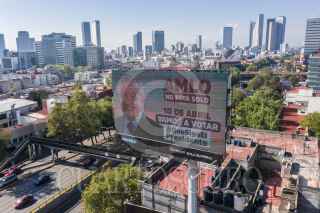 CIUDAD DE MÉXICO, 17MARZO2022.- Espectaculares con propaganda de la Revocación de Mandato a favor de Andrés Manuel López Obrador, presidente de México continúan siendo exhibidos en la capital del país. Mientras tanto el Senado de la República aprobó el decreto que interpreta el concepto de propaganda gubernamental, en la Ley General de Instituciones y Procedimientos Electorales; y en la Ley Federal de Revocación de Mandato. Por su parte el Instituto Nacional Electoral (INE) continúa con las investigaciones hacia particulares y entes públicos en más de 19 entidades del país en donde se promociona la consulta que se realizará el próximo 10 de abril. FOTO: MARIO JASSO/CUARTOSCURO.COM