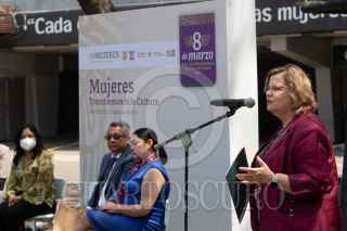 CIUDAD DE MÉXICO, 17MARZO2022.- Nadine Gasman, presidenta del Instituto Nacional de las Mujeres (INMUJERES), encabezó la inauguración de la exposición al aire libre "Mujeres Transformando la Cultura", en la Glorieta de los Insurgentes. FOTO: MOISÉS PABLO/CUARTOSCURO.COM